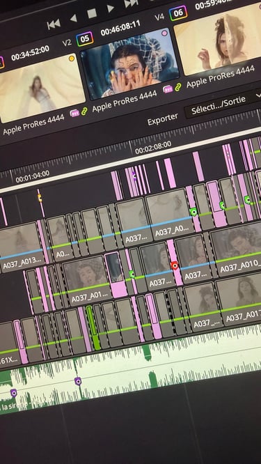 En salle de montage, je sculpte le rythme, les couleurs, le son.